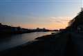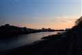 青が残る空とオレンジの地平がとても美しい。水辺の夕景は絵になりますね♪