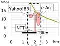 Yahoo!BBは距離および損失は表示されず、上記の速度だけが表示され、概ねe-Accessと一致しています。