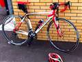 写真のMYROAD、サドル、バーテープ、ヘルメット、赤で統一されて、カッコイイですね。
