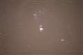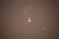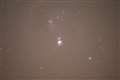 オリオン星雲は、多段階で露出の異なる写真を合成しないとこのように露出オーバーで白くなります。