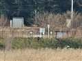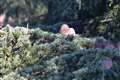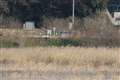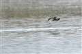 猛禽の出待ち中、遠くに飛ぶミコアイサを発見。
