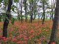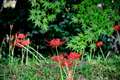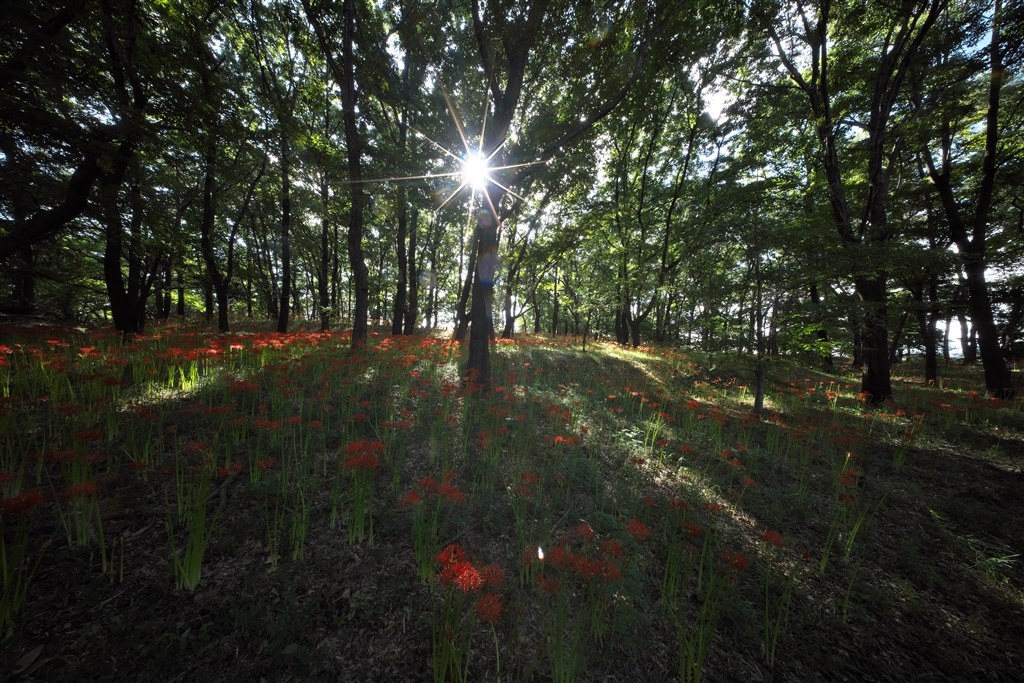 木漏れ日の彼岸花素晴らしいです。(・_・;)