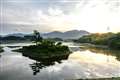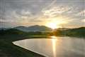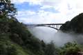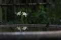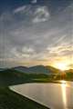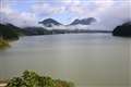 写真に、日野川ダム湖の写っているのは、転落防止用ポールの頭です。