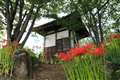 小さなお寺ですが 山門までの参道沿いに連なる彼岸花が 当地の八景の一つとも言われております…