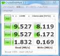 転送速度が65MB/s、書き込み35MB/sとうたっているのですが、crystal disk mark で計測したところ、