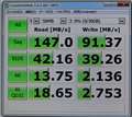 CrystalDiskMarkで、測ったら、X46はJ92と、同じくらいの数字でした。