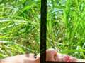 水槽に顔・手のひらをくっ付けているシーンです
