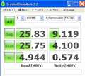 すいません、10月27日にレビューのほうへ投稿した一般中級者です。あの投稿の後、書き込みがどんどん遅くなり6MB/sを切るところまでいきました。さすがにこりゃ不良品だな気づきメーカーへ連絡・・返品。一週間後に代替品が送付されてきました。ベンチで計測すると書き込みが、9.2MB/s前後まで出て以前の品物より3MB/sも改善されてるので、これが正常で私の古いPCの限界なんだなぁとつくづく納得しました。一応ベンチも貼っておきますのでご覧になってください。