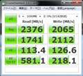 Crystal Disk Mark(CDS)の結果だけですと5回の最高を記録するため、下記ソフトウェアでのベンチも取ってみましたのでSS掲載しときます。構成は全く変わらずです。