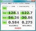 ExpressCard/34タイプSATAカードなどで接続した場合は同じRAIDシステムでも130MB/s程度しかレートが稼げません。