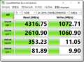 「CrystalDiskMark」のベンチマーク結果では、1〜2世代前のPCパーツとしては、まずまずの性能が出ているものと思います。《画像4》