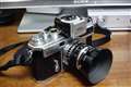 10年以上前のピントレバー折れの部品どり旧機からピントフード(CHIYOKO銘板)を移し変え。特殊なストラップ金具も取り換え。