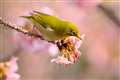 今日、河津桜とメジロを撮ったので1枚載せておきます。