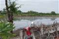水を張った水田に、多くの水鳥が来ていました。