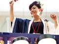 ☆2枚目>夏によさこいの先導車上で指揮をとる女の子を見上げて写したものです。
