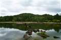 世界遺産平泉の毛越寺、浄土庭園「出島石組と池中立石」です。