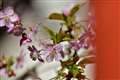 枝垂れ梅 ベランダで満開の図。