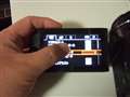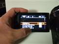 カメラを右手に持って左手でモニターをさ支え左親指でスクロールバーを触ると