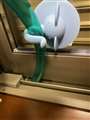 ちなみに我が家の場合・・・部屋干しの際にも写真のような吸盤型のホースホルダーを利用して、サッシの隙間から屋外へ排水するようにしました。