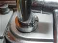亀裂が入っているのを発見、さらにその横のレバーと水道管とをネジでしめている部分を隠すふたのようなものまでなくなっているのを