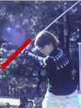幸い、シャフトクロスはありませんでしたが、アンダーのあおり打ちです。これはハーフウェイダウン(HWD)からではなく、テイクバックからすでに内に引きすぎていますね。 ですのでトップのグリップの位置が後方画像で、右耳のさらに左。 体と被って見えない。出前持ちが、90度ではなく寝ている上体でした。 コックが遅いのも原因かと思っています。