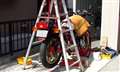 脚立を使ってぶら下げる。
