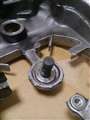 クランクケースが割れたので、純正をメッキしたものを買ったのですが、部品は移設せよと指示があったので、移設しようとしたら、写真の軸が取れなくて困ってます。この軸ってとれるのでしょうか?もしくは、品番が分かる方いらしゃいましたら、教えていただけないでしょうか?