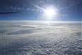 (結構飛行機のガラスは汚れているので、乱反射しています)