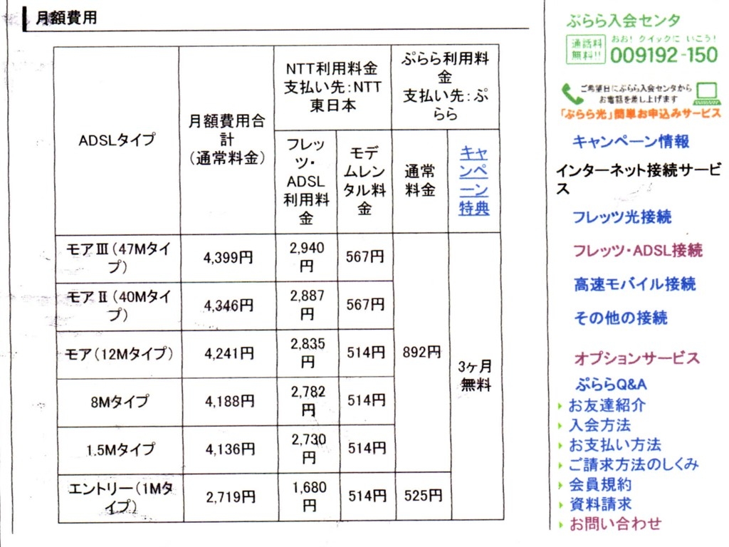 Aぷらら:ADSL接続サービスページ