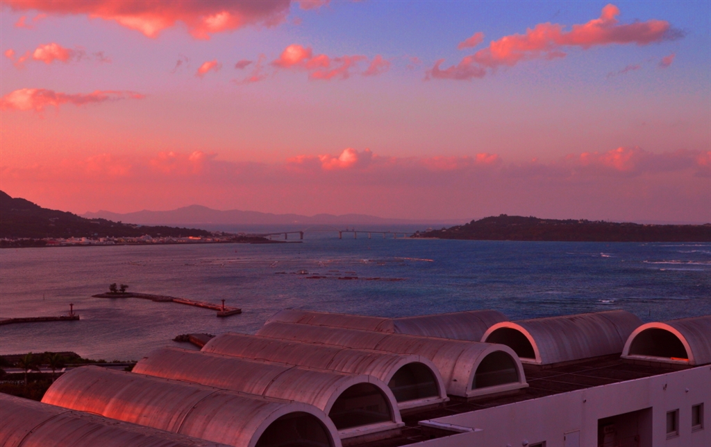 ホテルベランダから ちょっと遅い朝焼け