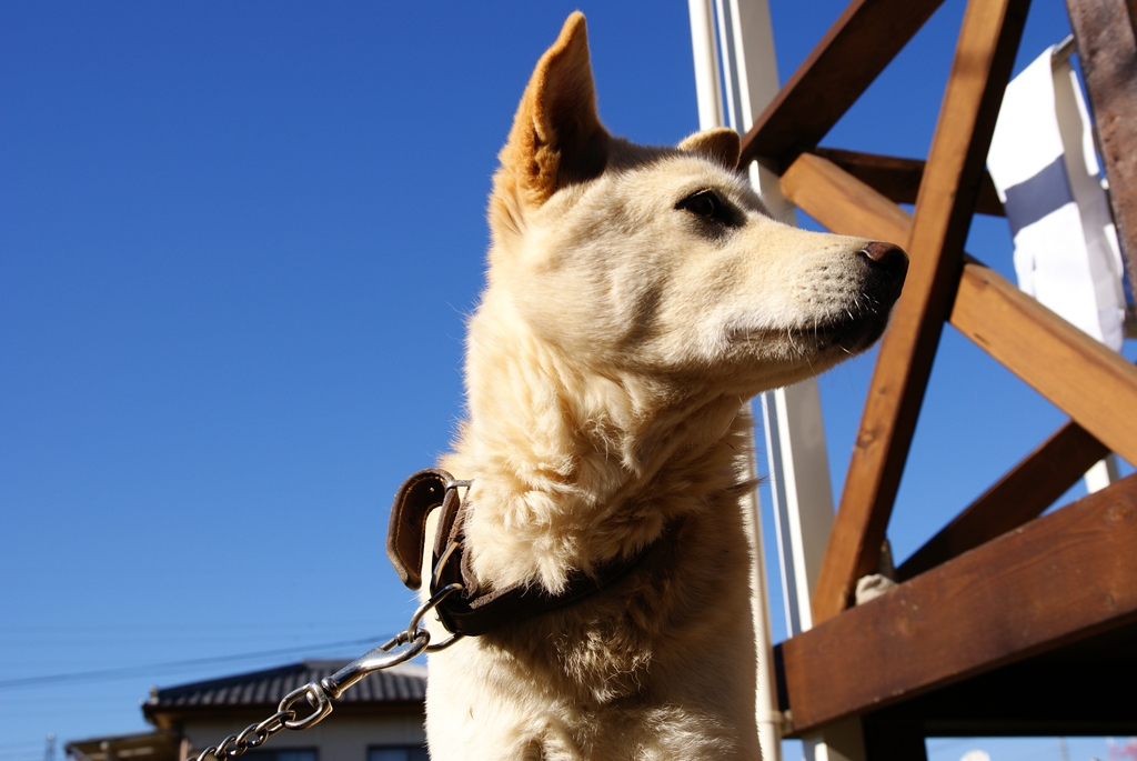 犬を見上げる