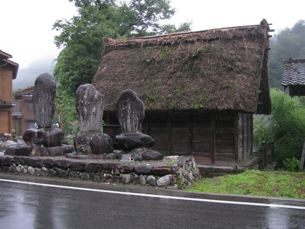 茅葺屋根と石塔