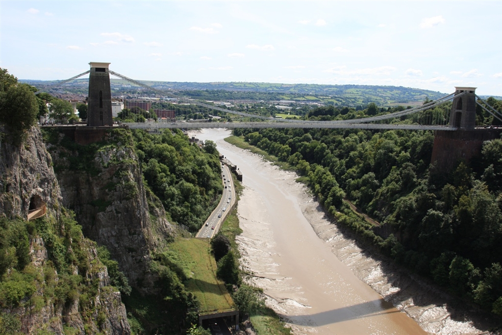 吊り橋と川と空