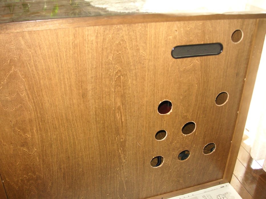 裏板の様子、円い孔はケーブルを通す孔