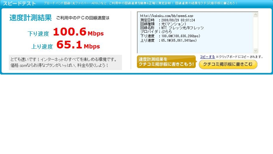 スピードテスト(光ファイバー) 雪印コーヒー牛乳さんのクチコミ掲示板画像1/1
