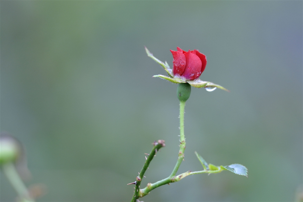 雨中に鮮やか紅の装い