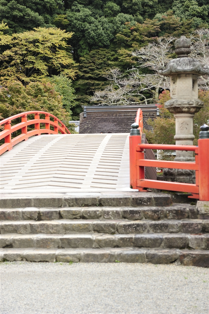 朱の欄干紅葉を促す
