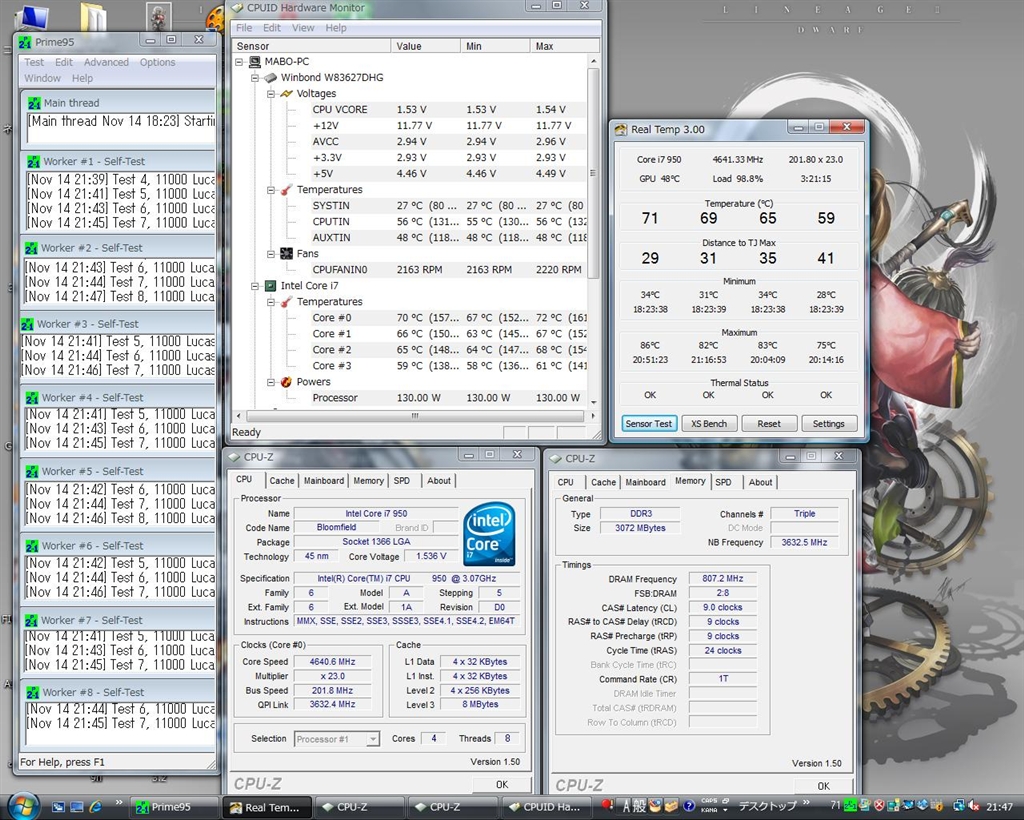 『skew上げてチョット安定(室温19度)しかしMAX86度とは。。w』 CPUクーラーすべて まぼっちさんのクチコミ掲示板画像1/2