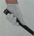 2)グリップを握りこぶし1〜2個分開けて握ってスイングする。