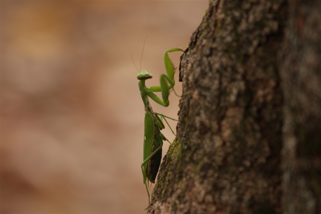 カマキリ見〜つけたピンズレはご愛嬌