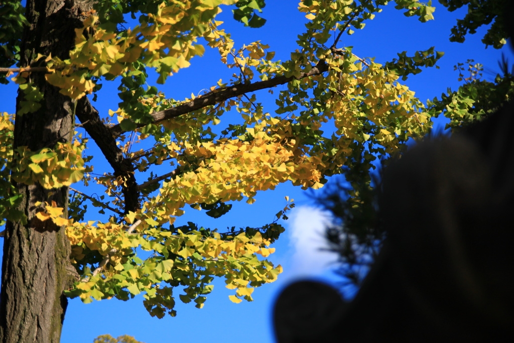 東寺、黄葉と青空
