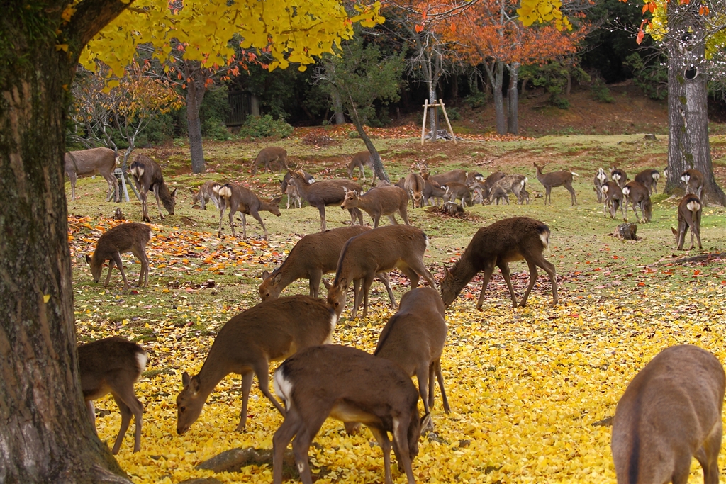 奈良秋寸景・神鹿食事