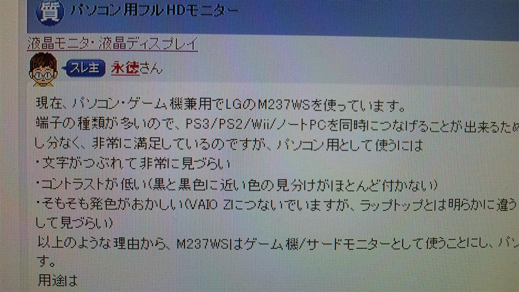 PCモニター・液晶ディスプレイすべて 氷呪さんのクチコミ掲示板画像1/1