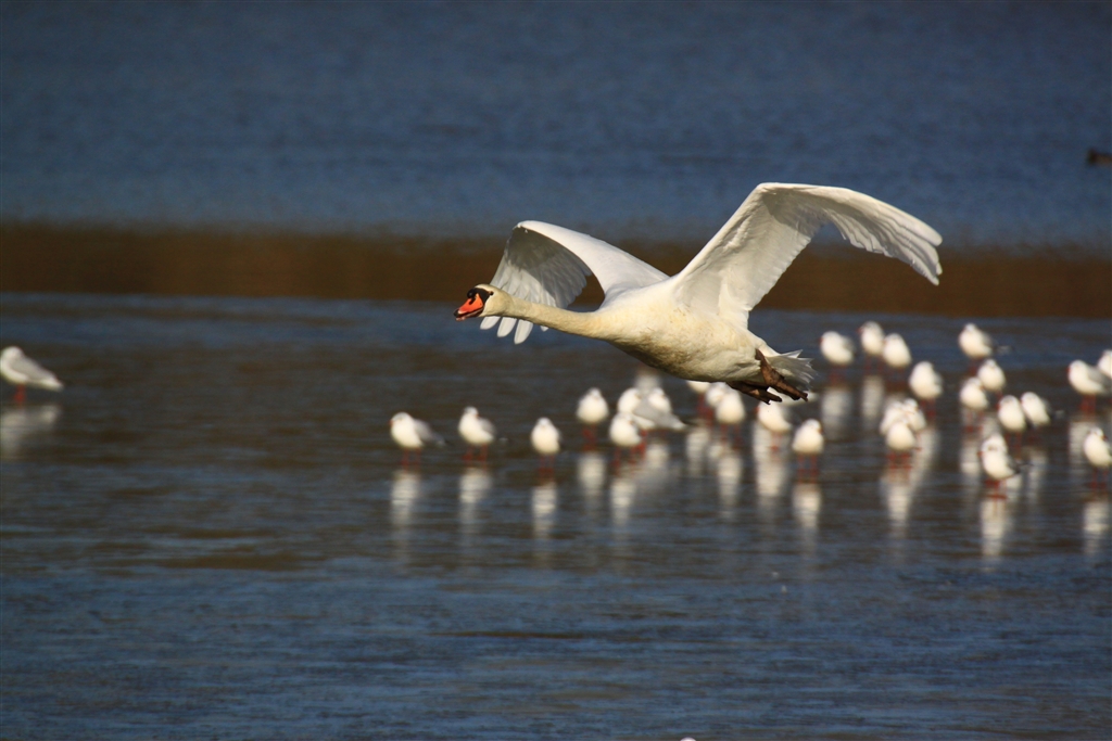 コブハクチョウ(背景にいるのはユリカモメ)