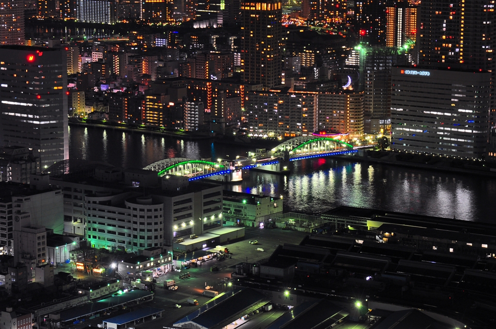 カレッタ汐留スカイレストラン展望台より 下・築地〜勝鬨橋〜上・月島方面