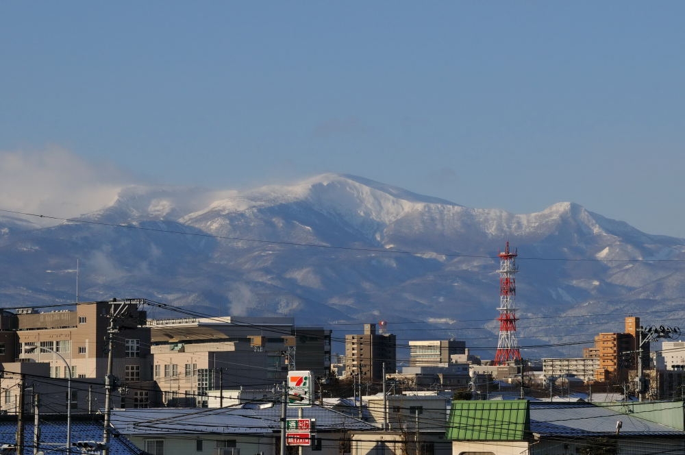 市街越しに安達太良山
