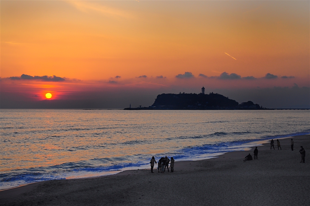 七里ヶ浜 落陽と江ノ島