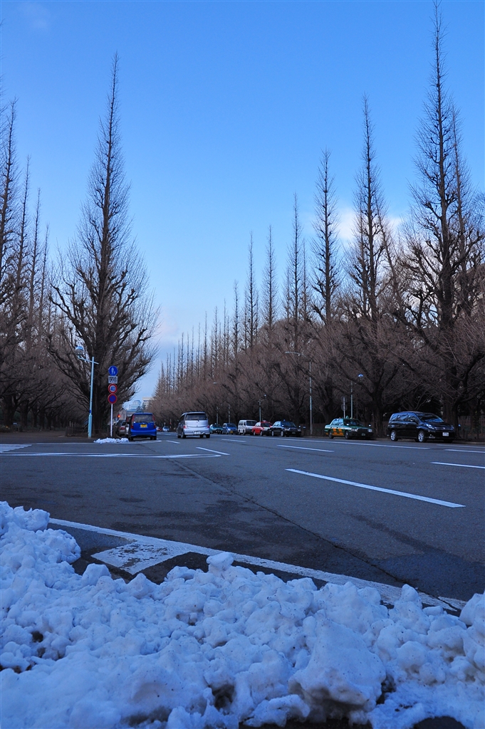 2年ぶりの雪 神宮外苑銀杏並木より