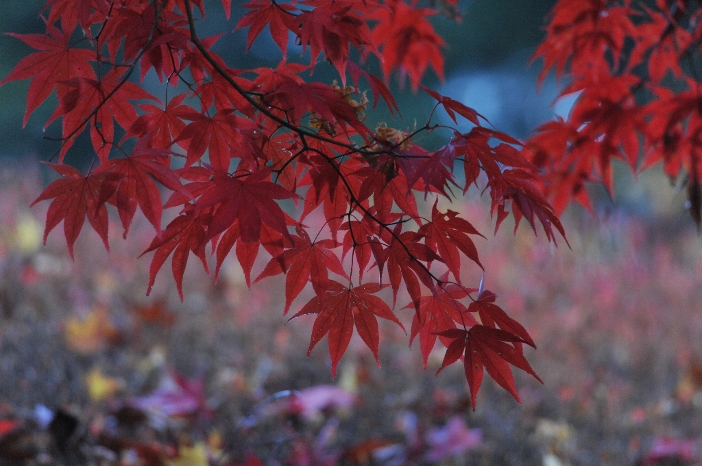 朝日の前にモミジを愛で