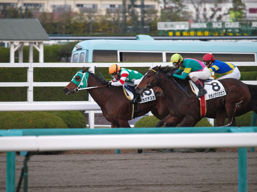 阪神12R 勝ち馬は内側の赤い人